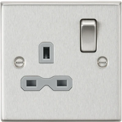 KnightsBridge 13A 1G DP Switched Socket with Grey Insert Square Edge Brushed Chrome