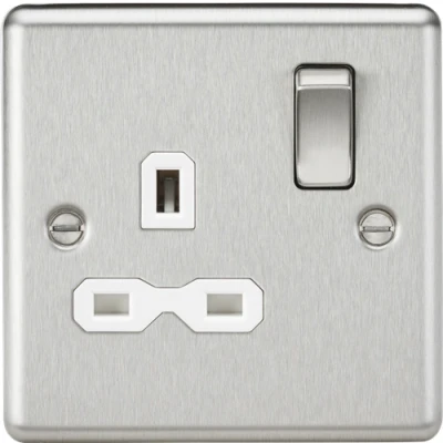 KnightsBridge 13A 1G DP Switched Socket with White Insert Rounded Edge Brushed Chrome