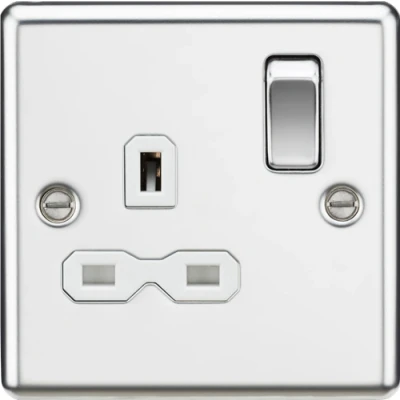 KnightsBridge 13A 1G DP Switched Socket with White Insert Rounded Edge Polished Chrome