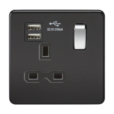 The Knightsbridge Screwless 13A 1G Switched Socket with Dual USB Charger is an elegant addition to any modern home, business, or hotel. This stylish socket not only meets functional needs but enhances your interior décor with its sleek design and appealing finish.