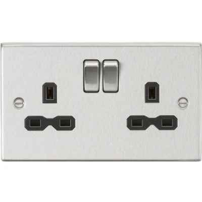 KnightsBridge 13A 2G DP Switched Socket with Black Insert Square Edge Brushed Chrome