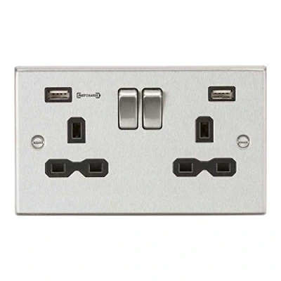 Amazon230V Raised Edge Twin Switched Socket with Dual Fastcharge USB A+A Ports FASTCHARGE - These intelligent USB charging ports have dynamic voltage and power, as the phone communicates with the charging ports the voltage can rise if the device is compatible with Fastcharge. Apple products are not compatible with this method of Fastcharge however they will be able to charge at a higher power than normal Certified to the very latest socket standards (BS1363-2:2016) and EMC Requirements (EN 62368-1, EN62680-1-1) Over Voltage Category 3 - Suitable for use in homes, cafes, bars, restaurants & hospitality suites Brushed Chrome Finish with Black Insert For safety and to get the best out of this or ANY USB charger always use USB certified cables Double pole switches ErP Ready to ensure power saving when not in use IP20 Rated Founded in Dunstable, Bedfordshire in 1998, Knightsbridge has since established itself as one of the UK's leading importers and distributors of lighting products and electrical wiring accessories. We pride ourselves on providing quality in everything we do — from our ever-growing competitive product ranges to the incredible quality of our service. All products are tested and certified for use in the uk, complying with the current UK wiring regulations. A member of Lighting Industry Association, LIA, Weight: 0.59745273002 pounds, Manufacturer: Knightsbridge