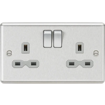 KnightsBridge 13A 2G DP Switched Socket with Grey Insert Rounded Edge Brushed Chrome