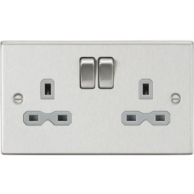 The Knightsbridge 13A 2G DP Switched Socket with Grey Insert in a Square Edge Brushed Chrome finish blends functionality with contemporary aesthetics, making it an ideal addition to any modern home. This switched socket is designed to deliver both high performance and an elegant visual appeal, enhancing your interior decor while providing essential utility.