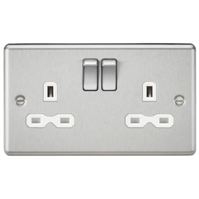 KnightsBridge 13A 2G DP Switched Socket with White Insert Rounded Edge Brushed Chrome