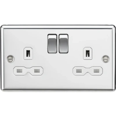 KnightsBridge 13A 2G DP Switched Socket with White Insert Rounded Edge Polished Chrome