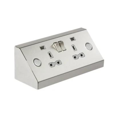 Ideal for kitchens, bedrooms, utility rooms and hotel rooms. - 13A rated - 2G Switched socket - Built in dual USB Charger 5V DC 2.4A (shared) - Matching metal rocker switches - Suitable for mounting under cabinets, or on counter tops. - Stainless Steel finish with grey interior - Certified to BS1363-2:2016, EN 62368-1, EN 62680-1-1, EMC and ErP Certified WE RECOMMEND YOU ALWAYS USE CERTIFIED USB CABLES FOR SAFETY AND TO ENSURE COMPATIBILITYTechnical Specification:Projection (mm): 77Construction: Premium grade steelFinish: Stainless SteelClass: IIP Rating: IP20Primary Voltage: 230V 50HzEarth Terminal: YesDimensions: Height: 77mmWeight: 0.666KgWarranty: 1 Year