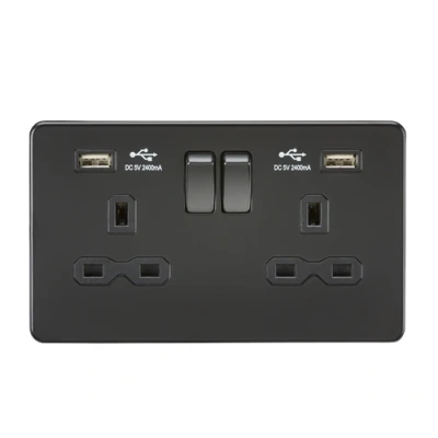 KnightsBridge 13A 2G switched socket with dual USB charger A + (2.4A) Matt black