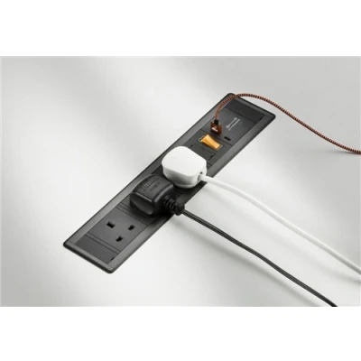 Suitable for mounting in desktops and recess wall mounting. Perfect for home offices, boardrooms, hotel rooms. Complete with On/Off Rocker and dual USB Fastcharge ports. Features - 3 x UK power outlets (13A Fused) - On/Off Rocker switch - FASTCHARGE USB-C port compatible with QC2.0/QC3.0 and USB-PD - FASTCHARGE USB-A port compatible with QC2.0/QC3.0 - Capable of delivering 0-50% charge in under 30 mins with compatible phones - 80% faster than a standard 5V DC 2A charger - Compatible with Android based devices supporting QC2.0/QC3.0 and USB-PD (via USB-C port only) - Compatible with Apple devices supporting USB-PD (iPhone 8 and above, require certified Lightning to USB-C charge/sync cable) - High quality components to ensure longevity of installation Specification FASTCHARGE is achieved by switching voltage 5V-12V USB-C port - 5V DC 3A (15W) with standard devices - 9V DC 2A (18W) with QC and USB-PD compatible devices - 12V DC 1.5A (18W) with QC and USB-PD compatible devices USB-A port - 5V DC 2A (10W) with standard devices - 9V DC 2A (18W) with QC compatible devices - 12V DC 1.5A (18W) with QC compatible devices NB: Only one port can activate FASTCHARGE at any one-time, alternative port will revert to 5V DC 1A WE RECOMMEND ONLY USING CERTIFIED USB CABLES FOR SAFETY, OPTIMUM PERFORMANCE AND TO ENSURE COMPATIBILITY IMPORTANT: THE DEVICE CONTROLS THE POWER BEING DRAWN, NOT THE SOCKET MOST COMPATIBLE DEVICES WILL ONLY ACTIVATE FASTCHARGE BETWEEN 0-70% BATTERY POWER AFTER THIS IT WILL REVERT TO STANDARD CHARGING PARAMETERS TO PROTECT BATTERYTechnical Specification:Depth (mm): 52Projection (mm): 2Cut-out Box W/H/D (mm): 323 x 65Construction: Premium grade steelFinish: BlackClass: IIP Rating: IP20Primary Voltage: 230V 50HzCable Length: 2Neon Indicator: YesDimensions: Height: 75mmWeight: 1.233KgWarranty: 2 Years
