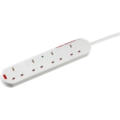 Domestic use surge protected extension lead. - 13A 240V AC - 4 x child protected sockets - Surge protected - With surge and neon power indicators - L-N type surge protection with 2 x MOVs plus one gas tube arrestor - Compact low profile design with angled socket edge to facilitate better cable management and prevent loaded sockets tipping extension lead. - Matt white finish - Approx. 2m cable length with BS plug top - Certified to BS 5733, EN 61643 - Supplied in Knightsbridge clip close polybagTechnical Specification:Construction: Thermoset resinFinish: WhiteIP Rating: IP20Primary Voltage: 230V 50HzCable Length: 2Neon Indicator: YesDimensions: Length: 248mm x Height: 28mmWeight: 0.4KgWarranty: 1 Year