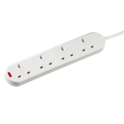Domestic use extension lead. - 13A rated - 4 x child protected sockets - With neon power indicator - Compact low profile design with angled socket edge to facilitate better cable management and prevent loaded sockets tipping extension lead. - Matt white finish - Approx. 3m cable length with BS plug top - Certified to BS 1363-2 - Supplied in Knightsbridge clip close polybagTechnical Specification:Construction: Thermoset resinFinish: WhiteIP Rating: IP20Primary Voltage: 230V 50HzCable Length: 3Neon Indicator: YesDimensions: Length: 248mm x Height: 28mmWeight: 0.5KgWarranty: 1 Year