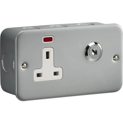 Gently contoured moulded rounded edge low profile design, projecting 7mm from wall (unless otherwise stated) with anti-microbial properties. 13A Socket with Neon Indicator Double Pole Key lock On or Off (Includes 2 keys) Designed to restrict unauthorized use of critical equipment, Manufacturer: Knightsbridge