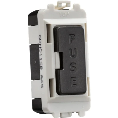 For appliance protection circuits, supplied with replaceable 13A fuse. Part of the Knightsbridge Grid system. Module simply clips into position from the front of the mounting frames (sold separately)Technical Specification:Projection (mm): 2.5Recessed Depth (mm): 21.2Min. Mounting Box Depth (mm): 35mmConstruction: ABSConstruction 2: & steelFinish: Smoked BronzeIP Rating: IP20Primary Voltage: 230V 50HzDimensions: Height: 56mmWeight: 0.021KgWarranty: 15 Years