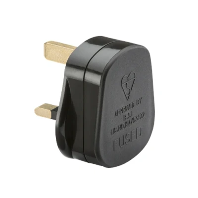 KnightsBridge 13A Plug Top with fuse Black (Screw Cord Grip)