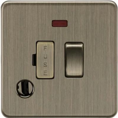 Knightsbridge 13A Switched Fused Spur with Neon and Flex Outlet Antique Brass