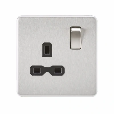 KnightsBridge 1G 13A 230V Screwless Brushed Chrome UK 3 Pin Switched Electrical Wall Socket Black Insert