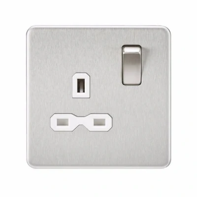 KnightsBridge 1G 13A 230V Screwless Brushed Chrome UK 3 Pin Switched Electrical Wall Socket White Insert
