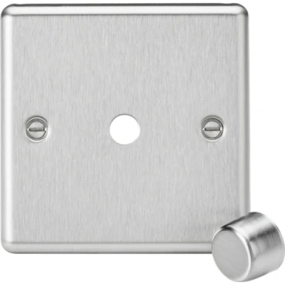 KnightsBridge 1G Raised Round Edge Dimmer Plate with Matching Metal Cap Brushed Chrome