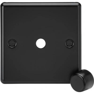 KnightsBridge 1G Raised Round Edge Dimmer Plate with Matching Metal Cap Matt Black