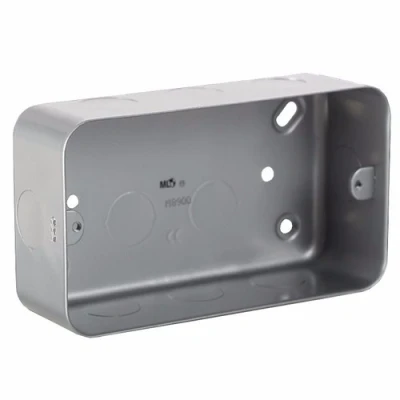 The M8900 2 Gang Metal Clad Back Box from Knightsbridge is a heavy dutyunit ideal for housing M series switches and sockets from knightsbridge for connection to your existing circuit ring. Stylishly clean and industrial in design, the M8900 features a durable powder coated surface with curved edges, resulting in a product that looks attractive and fits easily in both modern domestic and business/industrial uses. Main Features: Metal-clad for durability 2 gang back box Technical Specification: Weight (kg): 0.240 Construction: Premium Grade Steel Finish: Silver/grey Overall dimensions: 78 (l) 138 (w) 44 (d) IP rating: IP20 Fully certified to the latest british standards, this back box comes guaranteed for 1 year by the manufacturer.