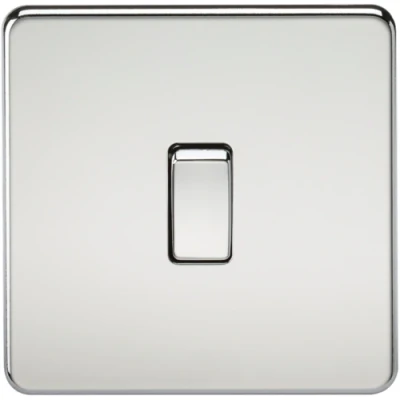 KnightsBridge 20A 1G DP 230V Screwless Polished Chrome Electric Wall Plate Switch