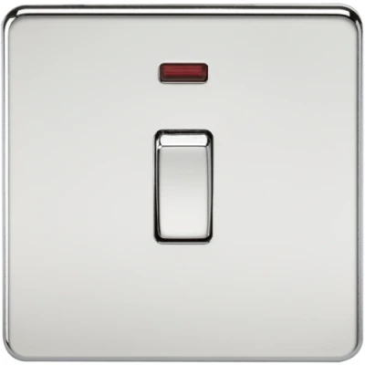 KnightsBridge 20A 1G DP 230V Screwless Polished Chrome Electric Wall Plate Switch with Neon