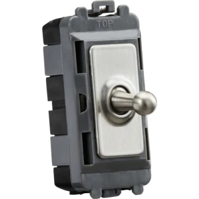 Module simply clips into position from the front of the mounting frames (sold separately) - 20AX - 2-way - Single Pole - For use with the Knightsbridge Grid system.Technical Specification:Depth: 15.3Projection: 20.5Min. Mounting Box Depth: 35mmConstruction: Premium grade steel & ABSFinish: Brushed ChromeIP Rating: IP20Primary Voltage: 230V 50HzDimensions: Height: 56mmWeight: 0.029KgWarranty: 15 Years
