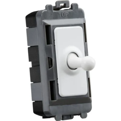 Module simply clips into position from the front of the mounting frames (sold separately) - 20AX - 2-way - Single Pole - For use with the Knightsbridge Grid system.Technical Specification:Depth: 15.3Projection: 20.5Min. Mounting Box Depth: 35mmConstruction: Premium grade steel & ABSFinish: Matt WhiteIP Rating: IP20Primary Voltage: 230V 50HzDimensions: Height: 56mmWeight: 0.029KgWarranty: 15 Years