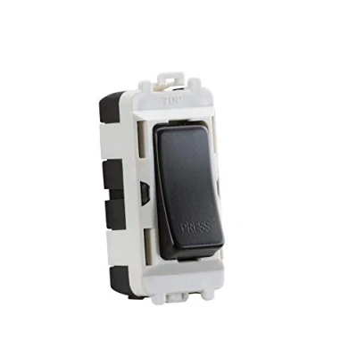 Module simply clips into position from the front of the mounting frames (sold separately) - 20AX - 2-way - Single Pole - Retractive Switch marked PRESS - For use with the Knightsbridge Grid systemTechnical Specification:Projection (mm): 7Recessed Depth (mm): 18.7Min. Mounting Box Depth (mm): 35mmConstruction: ABSConstruction 2: & steelFinish: Matt BlackIP Rating: IP20Primary Voltage: 230V 50HzDimensions: Height: 56mmWeight: 0.027KgWarranty: 15 Years