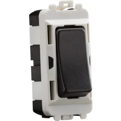 Module simply clips into position from the front of the mounting frames (sold separately) - 20AX - 2-way - Single Pole - For use with the Knightsbridge Grid systemTechnical Specification:Projection (mm): 7Recessed Depth (mm): 18.7Min. Mounting Box Depth (mm): 35mmConstruction: ABSConstruction 2: & steelFinish: Smoked BronzeIP Rating: IP20Primary Voltage: 230V 50HzDimensions: Height: 56mmWeight: 0.027KgWarranty: 15 Years