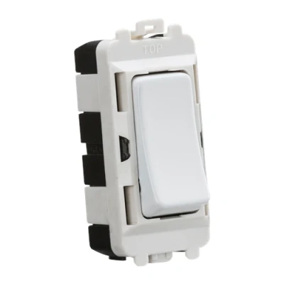 Module simply clips into position from the front of the mounting frames (sold separately) - 20AX - 2-way - Centre off switch position (dual circuit control) - Single pole - For use with the Knightsbridge Grid systemTechnical Specification:Projection (mm): 7Recessed Depth (mm): 18.7Min. Mounting Box Depth (mm): 35mmConstruction: ABSConstruction 2: & steelFinish: Matt WhiteIP Rating: IP20Primary Voltage: 230V 50HzDimensions: Height: 56mmWeight: 0.027KgWarranty: 15 Years