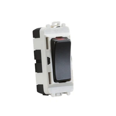 Module simply clips into position from the front of the mounting frames (sold separately) - 20AX - Double Pole - With LED Indicator - For use with the Knightsbridge Grid system NB: Please note the rockers on these switches are not replaceableTechnical Specification:Projection (mm): 7Recessed Depth (mm): 18.7Min. Mounting Box Depth (mm): 35mmConstruction: ABSConstruction 2: & steelFinish: Matt BlackIP Rating: IP20Primary Voltage: 230V 50HzDimensions: Height: 56mmWeight: 0.027KgWarranty: 15 Years