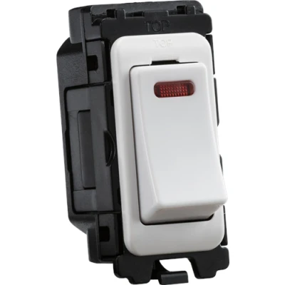 Designed and finished to coordinate with the Curved Edge Switches & Sockets range. - 20AX rated - Double Pole - Front mounting grid module FOR USE WITH CURVED GRID SYSTEM ONLYTechnical Specification:Depth: 25Recessed Depth: 20Min. Mounting Box Depth: 35mmConstruction: Thermoset resinFinish: WhiteIP Rating: IP20Primary Voltage: 230V 50HzNeon Indicator: YesDimensions: Height: 55mmWeight: 0.028KgWarranty: 15 Years