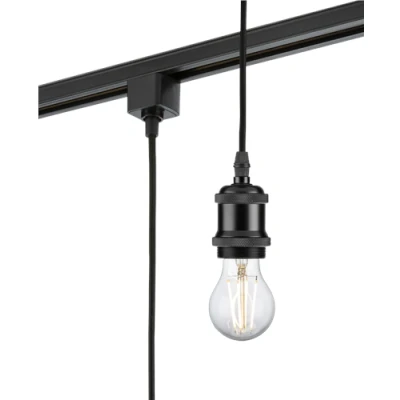 Amazon MarketplaceVintage Track Pendant: Black metal E27 pendant lamp holder designed to bring a classic, decorative look to modern track lighting installations. Adjustable Drop Length: Supplied with a 1.8 metre cable drop, allowing the height to be adjusted to suit the space and desired lighting effect. Track System Compatibility: Pre-wired with a TRKxx adaptor for quick and easy installation onto compatible TRKxx series track systems. Flexible Styling Options: Compatible with lampshades featuring a 42mm internal ring diameter, offering added design versatility. Lamp Specification: Suitable for E27 lamps (lamp not included), allowing full flexibility in lamp style, colour temperature and output.