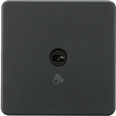 Perfect solution for preventing the transfer of germs and bacteria in both domestic and commercial environments. - Gesture sensor control ON/OFF - Sensor distance: Max. 3cm - Requires neutral wire - Min. mounting box depth: 25mm - Screwless low profile design with built-in gasketTechnical Specification:Projection: 4.3Min. Mounting Box Depth: 25mmConstruction: Premium grade steelFinish: AnthraciteClass: IIP Rating: IP20Primary Voltage: 230V 50HzDimensions: Height: 88mmWeight: 0.175KgWarranty: 2 Years