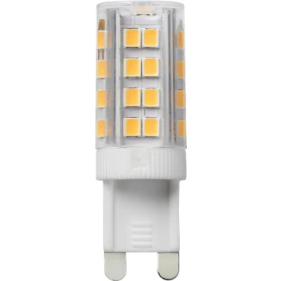Ideal replacement for most G9 halogen lamps 2700K, Warm White, 320lm Non-dimmableTechnical Specification:Diameter (mm): 16Construction: CeramicConstruction 2: & polycarbonateFinish: WhiteIP Rating: IP20Primary Voltage: 230V 50HzDiffuser: ClearLamp Technology: LEDLamp Base: G9Dimmable: NoL70B50: 25000Beam Angle: 270CCT: 2700Light Colour: Warm WhiteLumens: 320Wattage: 3Efficacy: 111.49CRI: >80Dimensions: Height: 50mmWeight: 0.017KgWarranty: 3 Years