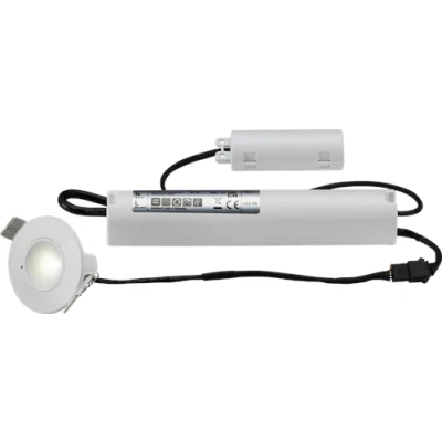 The EMPOWER4 range offers a complete solution in one package. Integral auto test facility ensuring periodic testing at pre-programmed intervals. Equipped with a Lithium (LiFePO4) battery, it ensures a minimum 3-hour illumination and a long lifetime. A corridor lens included providing use throughout the project. - Comes with a separate green LED charge indicator - Pre-wired battery pack for ease of installation - Maintained or non-maintained use options - Self-test emergency - Lithium (LiFePO4) battery - Corridor lens accessory included in the box - 5500KTechnical SpecificationRecessed Depth: 32Minimum Void: 80Cut-out Diameter: 45Construction: PolycarbonateFinish: WhiteClass: IIIP Rating: IP20Primary Voltage: 230V 50HzCable Length: 0.35Emergency: Maintained / Non-maintained / SwitchedLamp Technology: LEDLamp Included: YesDimmable: NoL70B50: 30000Beam Angle: 140CCT: 5500Light Colour: DaylightLumens: 140Lumens (Em. mode): 140Wattage: 3.5Efficacy: 40CRI: >70Technical Specification:Finish: White Colour Temperature (K): 5500 IP Rating: IP20 Light Colour: Daylight Wattage: 3.5 WattDimensions: Length: 183mmWeight: 0.22KgWarranty: 5 Years