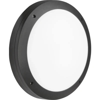KnightsBridge 230V IP65 18W LED Round Bulkhead CCT with Daylight Sensor Black