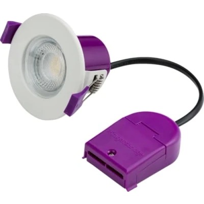 Push-fit terminals with loop-in/loop-out capabilitiesSelectable colour temperature 3000/4000/5500KFire-rated - 30/60/90min solid timber, 30min web joist and 30min i-joist (Staircraft)Acoustic-ratedSupplied with white trimInterchangeable bezels available3-year warrantyDimmable**For use with Trailing Edge dimmers - please check compatibility before installation.Technical SpecificationBarcode: 5056270888010Diameter: 84 mmProjection: 4 mmRecessed Depth: 54 mmMinimum Void: 54 mmCut-Out Diameter: 55 mmConstruction: Pressed steel & polycarbonateFinish: WhiteClass: IIIP Rating: IP65 (IP20 from above)Primary Voltage: 230V 50HzLamp Technology: SMD LEDLamp Included: YesDimmable: Yes*L70B10: 50,000Energy Rating (Class) Post 2021 SLR: CBeam Angle: 55CCT: 3000/4000/5500 KLight Colour: CCTLumens: 520/560/540 lmLumens (Light Source Only): 600/620/625 lmWattage: 5Efficacy: 126/137/132 lm/WCRI: >80Technical Specification:Finish: White IP Rating: IP65 Dimmable: Yes Power: 5WDimensions: Length: 84mm x Height: 58mmWarranty: 3 Years