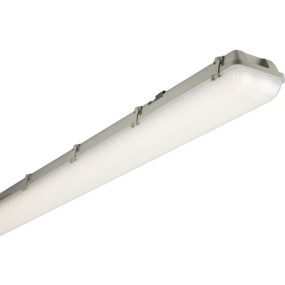 230V IP65 6ft 69W Twin LED built in Non-Corrosive c/w Emergency - Daylight Ideal for industrial and commercial applications - Energy efficient integral high output LED - Indoor and outdoor use - Ideal replacement for standard fluorescent fixtures - 3 hour Emergency - Complete with fixing accessories - Tough impact resistant polycarbonate body and diffuser - 5 year warranty - 14 lockable clips supplied as standard 6000K, 7820lmTechnical Specification:Construction: PolycarbonateFinish: GreyClass: IIP Rating: IP65Primary Voltage: 230V 50HzDiffuser: OpalEmergency: Maintained / Non-maintained / SwitchedLamp Technology: LEDLamp Included: YesDimmable: NoL70B50: 50000Beam Angle: 120CCT: 6000Light Colour: DaylightLumens: 7820Lumens (Light Source only): 9510Lumens (Em. mode): 708Wattage: 69Efficacy: 144.5CRI: >80Driver Type: Constant CurrentDimensions: Length: 1828mm x Height: 90mmWeight: 4.37KgWarranty: 5 Years (excluding battery)