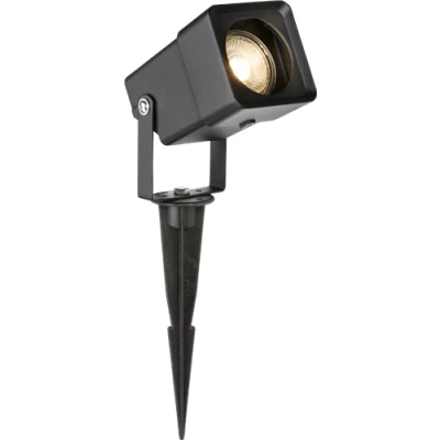 Exterior decorative GU10 garden spike light - IP65 rating - Supplied with wall mount bracket and spike - Die-cast aluminium and glass construction - Pre-wired with 2m outdoor cable - Suitable for LED GU10 lamps Dimmable subject to lamp type Lamp not includedTechnical Specification:Depth: 72Construction: Die-cast aluminium & glassFinish: BlackClass: IIP Rating: IP65Primary Voltage: 230V 50HzCable Length: 2Lamp Technology: Halogen / LED CompatibleLamp Base: GU10Lamp Included: NoDimmable: Lamp dependentMax. Wattage: 35Dimensions: Length: 112mmWeight: 0.467KgWarranty: 2 Years