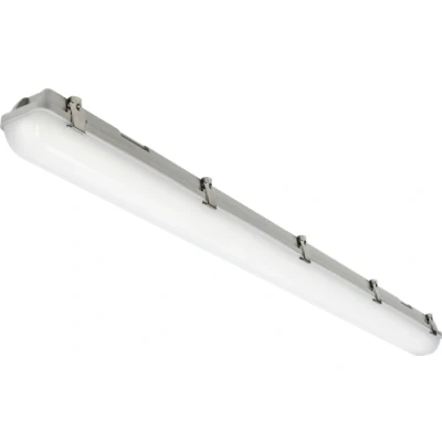 Torlan offers superior commercial and industrial, indoor and outdoor illumination, reducing complexity by combining traditional single and twin outputs into a single, slimline housing which can be either surface, BESA box** or suspension mounted**. Torlan is available in 653mm (2ft), 1263mm (4ft), 1563mm (5ft), and 1828mm (6ft) lengths. Boasting an efficacy of up to 160lm/w***, Torlan is perfect for energy-efficient, professional lighting installations. The complete range is constructed from anti-corrosive polycarbonate material, with an IP65 weatherproof rating coupled with an IK08 impact rating. The stainless steel diffuser clips also ensure longevity in any application. These features combined ensure Torlan can be used for a multitude of environments. The complete range offers selectable 3000K, 4000K, and 5700K white light outputs, wattage/lumen output and dimming controls** Variant breakdown: CWA - colour temperature and wattage adjustment via means of internal switches, giving the specifier and installer the ability to select the desired wattage/lumen output, as well as the required colour temperature. This is also useful for stockists as there is no need to stock single and twin variants with every CCT variation. CDA - colour temperature and DALI control with the CCT adjusted using an internal switch. The DALI standard allows individual dimming control of each luminaire compatible with DALI compliant lighting control systems. This model allows for the selection of 3 CCTs as well as DALI control. CWMA - colour temperature and microwave sensor control with the CCT and sensor parameters adjusted using internal switches. This model allows for selecting 2 wattages and 3 CCTs, with programmable on/off control via means of the built-in sensor. All variants are available with self-test 3-hour emergency options. - 3000K, 4000K, 5700K selectable CCT - 2 selectable wattage/lumen outputs*** - Highly efficient - up to 160lm/w*** - IP65 & IK08 ratings - Stainless steel diffuser fastening clips - On/Off, Microwave, and DALI control options - Self-test 3-hour emergency option - Surface, BESA, and suspension mounting accessories (sold separately) - 4,900lm at 4000K **Requires accessory ***Depending on modelTechnical SpecificationProjection: 90Construction: PolycarbonateFinish: GreyClass: IIP Rating: IP65Primary Voltage: 230V 50HzDiffuser: OpalEmergency: Maintained / Non-maintained / SwitchedLamp Technology: SMD LEDLamp Included: YesL70B50: 60000Energy Rating (Class) post 2021 SLR: CBeam Angle: 115CCT: 3000/4000/5700Light Colour: CCTLumens: 4900Lumens (Light Source only): 5500Lumens (Em. mode): 340Wattage: 33Efficacy: 148.5CRI: >85Driver Type: DALITechnical Specification:Finish: Grey Colour Temperature (K): 3000/4000/5700 IP Rating: IP65 Energy Rating: C Wattage: 33 WattDimensions: Length: 1263mmWeight: 1.92KgWarranty: 5 Years (excluding battery)