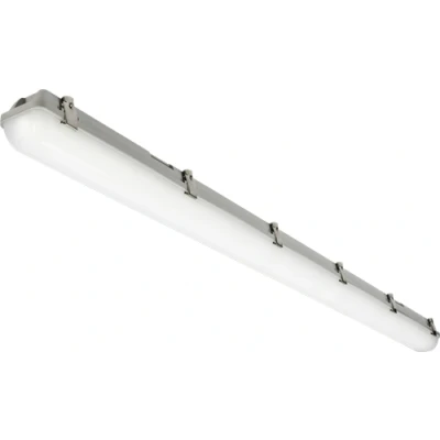 Torlan offers superior commercial and industrial, indoor and outdoor illumination, reducing complexity by combining traditional single and twin outputs into a single, slimline housing which can be either surface, BESA box** or suspension mounted**. Torlan is available in 653mm (2ft), 1263mm (4ft), 1563mm (5ft), and 1828mm (6ft) lengths. Boasting an efficacy of up to 160lm/w***, Torlan is perfect for energy-efficient, professional lighting installations. The complete range is constructed from anti-corrosive polycarbonate material, with an IP65 weatherproof rating coupled with an IK08 impact rating. The stainless steel diffuser clips also ensure longevity in any application. These features combined ensure Torlan can be used for a multitude of environments. The complete range offers selectable 3000K, 4000K, and 5700K white light outputs, wattage/lumen output and dimming controls** Variant breakdown: CWA - colour temperature and wattage adjustment via means of internal switches, giving the specifier and installer the ability to select the desired wattage/lumen output, as well as the required colour temperature. This is also useful for stockists as there is no need to stock single and twin variants with every CCT variation. CDA - colour temperature and DALI control with the CCT adjusted using an internal switch. The DALI standard allows individual dimming control of each luminaire compatible with DALI compliant lighting control systems. This model allows for the selection of 3 CCTs as well as DALI control. CWMA - colour temperature and microwave sensor control with the CCT and sensor parameters adjusted using internal switches. This model allows for selecting 2 wattages and 3 CCTs, with programmable on/off control via means of the built-in sensor. All variants are available with self-test 3-hour emergency options. - 3000K, 4000K, 5700K selectable CCT - 2 selectable wattage/lumen outputs*** - Highly efficient - up to 160lm/w*** - IP65 & IK08 ratings - Stainless steel diffuser fastening clips - On/Off, Microwave, and DALI control options - Self-test 3-hour emergency option - Surface, BESA, and suspension mounting accessories (sold separately) - 7,300lm at 4000K **Requires accessory ***Depending on modelTechnical SpecificationProjection: 90Construction: PolycarbonateFinish: GreyClass: IIP Rating: IP65Primary Voltage: 230V 50HzDiffuser: OpalEmergency: Maintained / Non-maintained / SwitchedLamp Technology: SMD LEDLamp Included: YesL70B50: 60000Energy Rating (Class) post 2021 SLR: CBeam Angle: 140CCT: 3000/4000/5700Light Colour: CCTLumens: 7300Lumens (Light Source only): 8200Lumens (Em. mode): 320Wattage: 50Efficacy: 146.3CRI: >85Driver Type: DALITechnical Specification:Finish: Grey Colour Temperature (K): 3000/4000/5700 IP Rating: IP65 Energy Rating: C Wattage: 50 WattDimensions: Length: 1563mmWeight: 2.27KgWarranty: 5 Years (excluding battery)