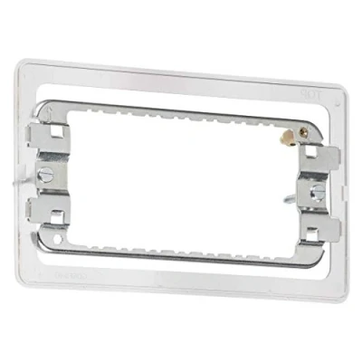 For use with the Screwless Grid Faceplates only. - 3-4 module grid mounting frame - Complete with gasket - For use with 3G and 4G Screwless Grid FaceplatesTechnical Specification:Projection (mm): 10Construction: Premium grade steelIP Rating: IP20Earth Terminal: YesDimensions: Height: 88mmWeight: 0.04KgWarranty: 15 Years