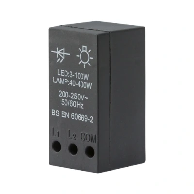Replacement leading edge dimmer module. Offset position - 40-400W Incandescent - 3-100W LED - 2-way - Push on/off - Leading edge - Certified to EN 60669-2 - Minimum mounting box depth: 35mmNB: PLEASE CHECK WITH LAMP MANUFACTURER FOR COMPATIBILITYSpecification: Depth (mm): 44Projection (mm): 18Recessed Depth (mm): 27Min. Mounting Box Depth (mm): 35mmConstruction: PAFinish: BlackIP Rating: IP20Primary Voltage: 230V 50Hz