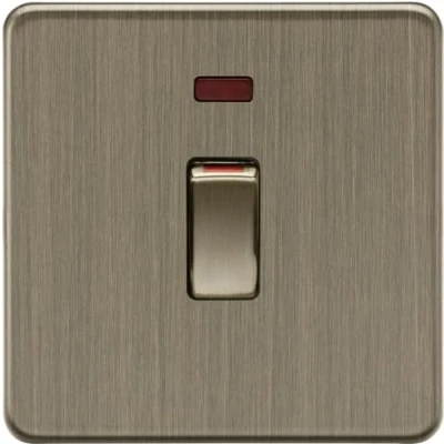 Knightsbridge 45A 1G DP switch with neon Antique Brass