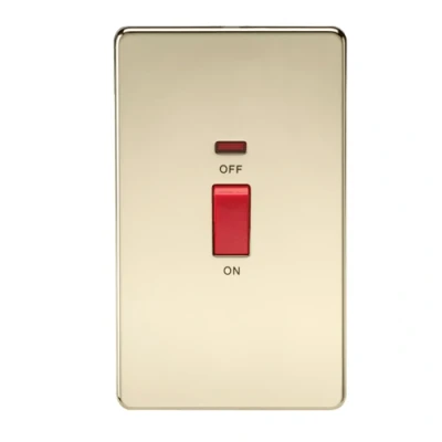 KnightsBridge 45A 2G DP 230V Screwless Polished Brass Electric Switch With Neon