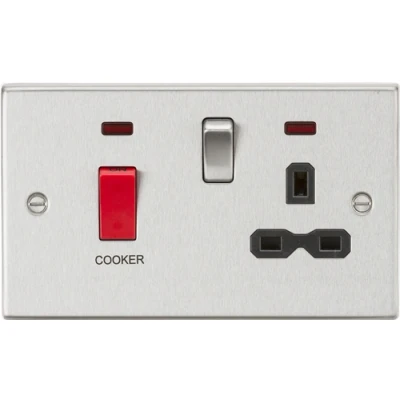 KnightsBridge 45A DP Cooker Switch & 13A Switched Socket with Neons Black Insert Square Edge Brushed Chrome