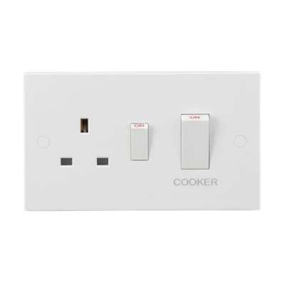 KnightsBridge 45A DP Cooker Switch and 13A Socket (White Rocker)