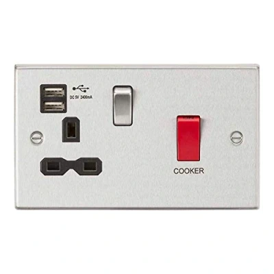 In summary, the Knightsbridge 45A Double Pole Switch & 13A Switched Socket with Dual USB Charger merges high functionality with contemporary design, making it an essential addition to modern kitchens. Its ability to support multiple cooking appliances while providing convenient USB charging capabilities makes it a smart choice for busy households.